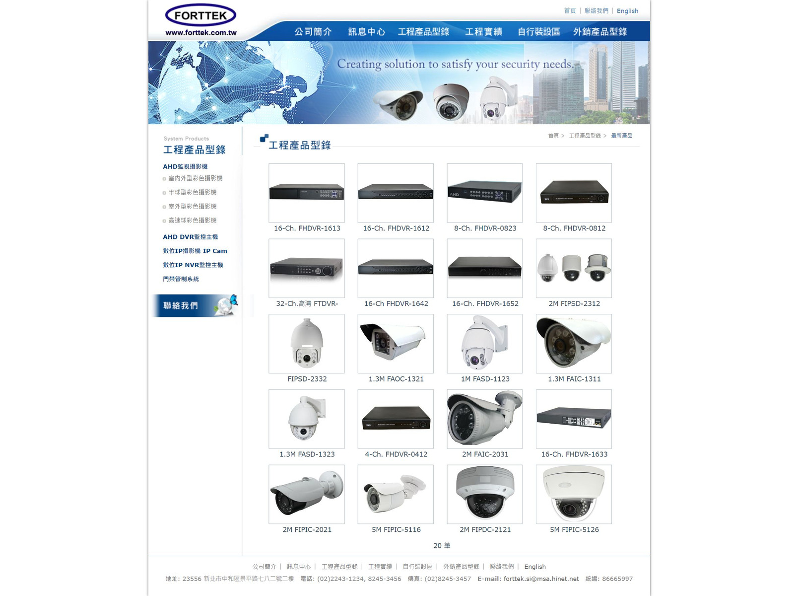 監視器產品網站,網站後台包含功能文章管理,產品目錄,工程實績,聯絡我們