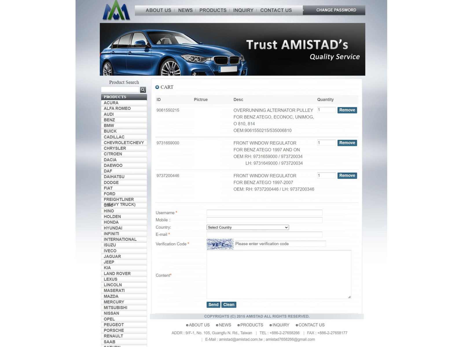 - 網站介紹: 汽車零件目錄,產品目錄,加入購物車詢問,英文版